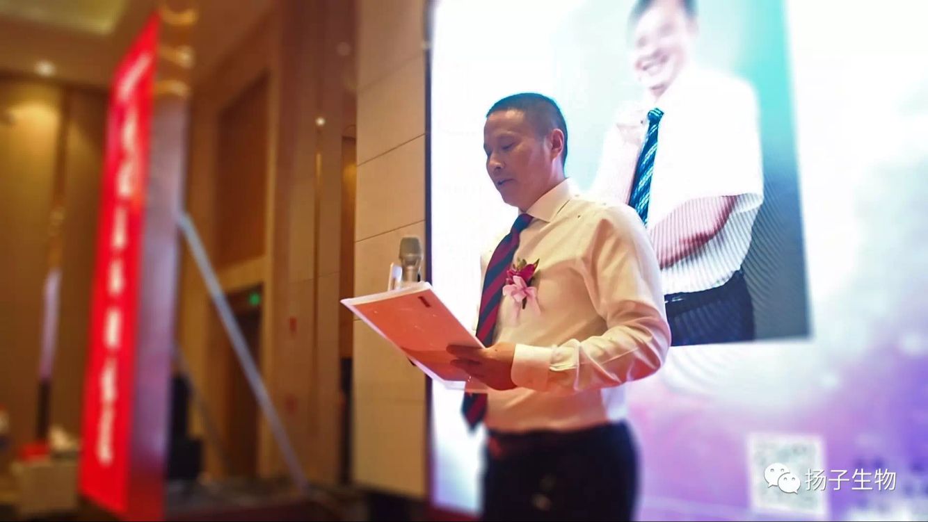 (揚子生物董事長周峰致歡迎辭)