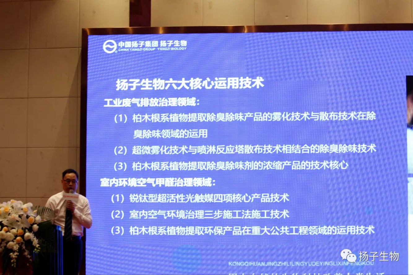 在此次會議上,揚子生物總經理洪宗本重磅發布了揚子生物六大核心運用技術工業廢氣排放治理領域:
