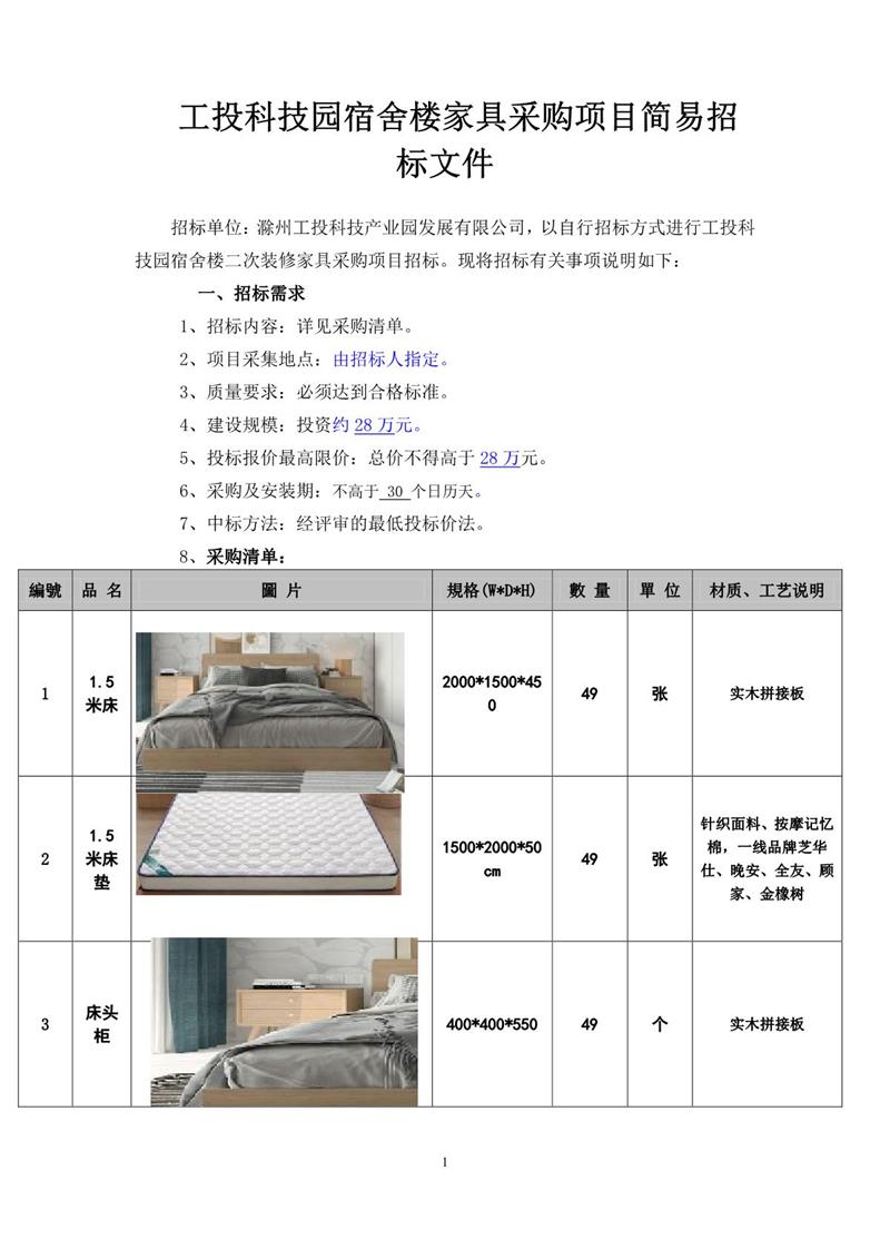 工投科技園宿舍樓家具采購項目簡易招標文件(1)(1).doc